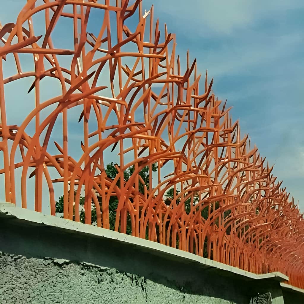 حفاظ اف آبشاری پرتراکم در یزد با تراکم بسیار بالا, شاخه های نوک تیز و جوشکاری صنعتی, امنیتی چند لایه ایجاد می کند که برای دیوارهای ساختمان های پرریسک یزد ایده آل است و عبور غیرمجاز را غیرممکن می سازد.