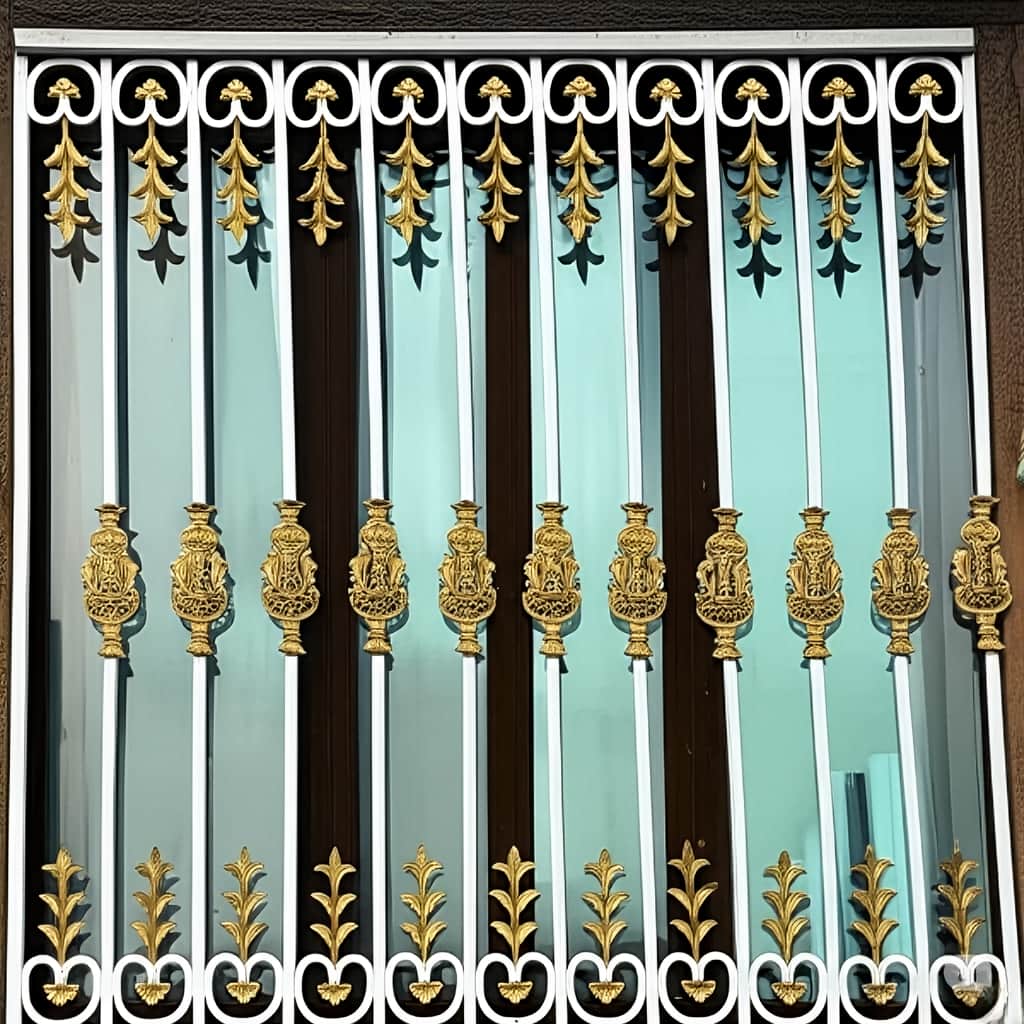 حفاظ پنجره مدل افشان در یزد, تلفیقی از امنیت بالا و نمای هنری فاخر است. ترکیب استحکام سازه ای با تزئینات سلطنتی و آبکاری طلایی, این مدل را به انتخابی خاص برای نمای ساختمان های لوکس و مدرن یزد تبدیل می کند.